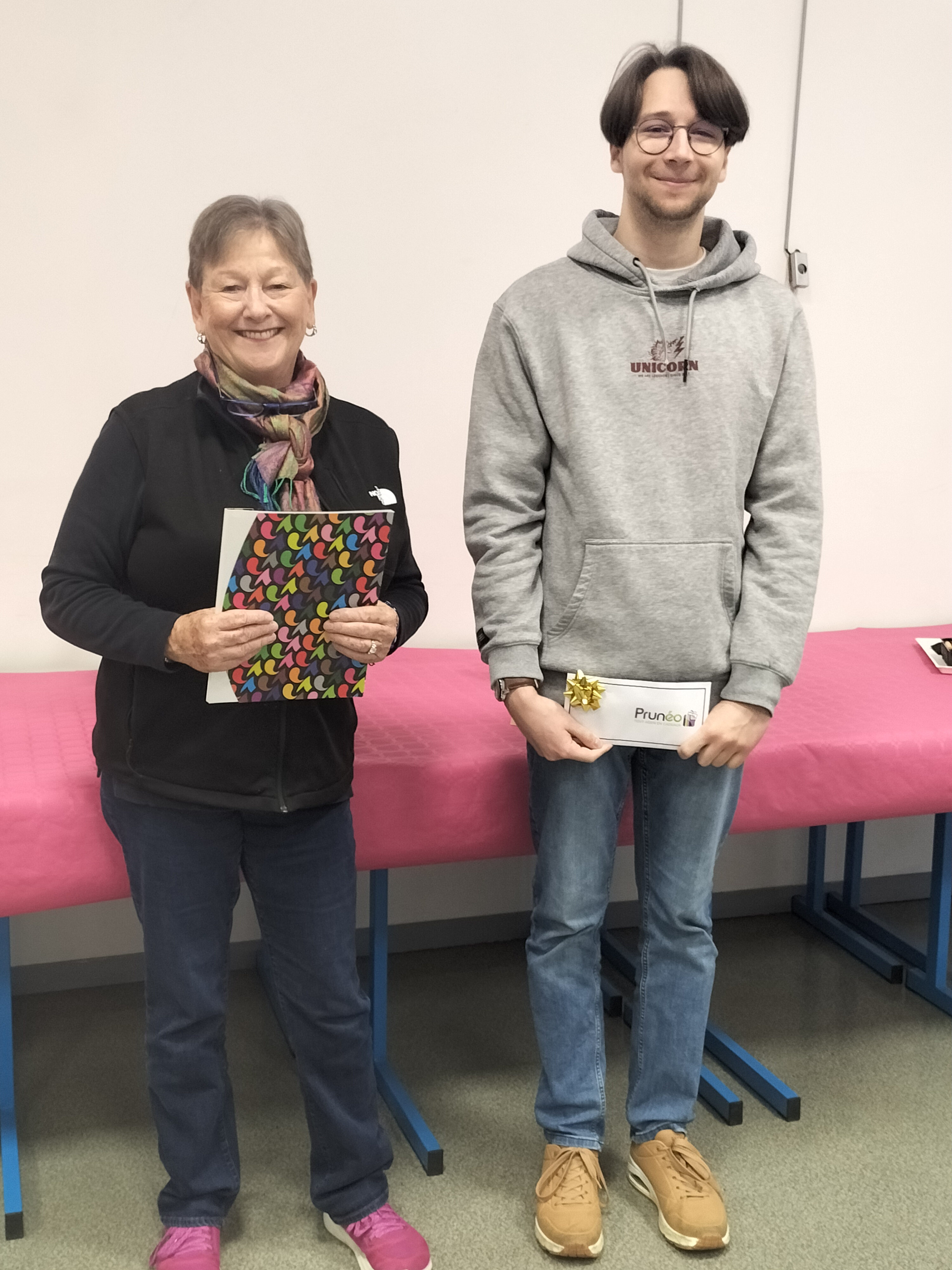 Remise du prix à Liam par Valérie Harbolovic